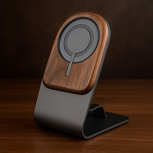 Walnut Wood MagSafe Magnetic Stand – Wireless Charging Holder for iPhone